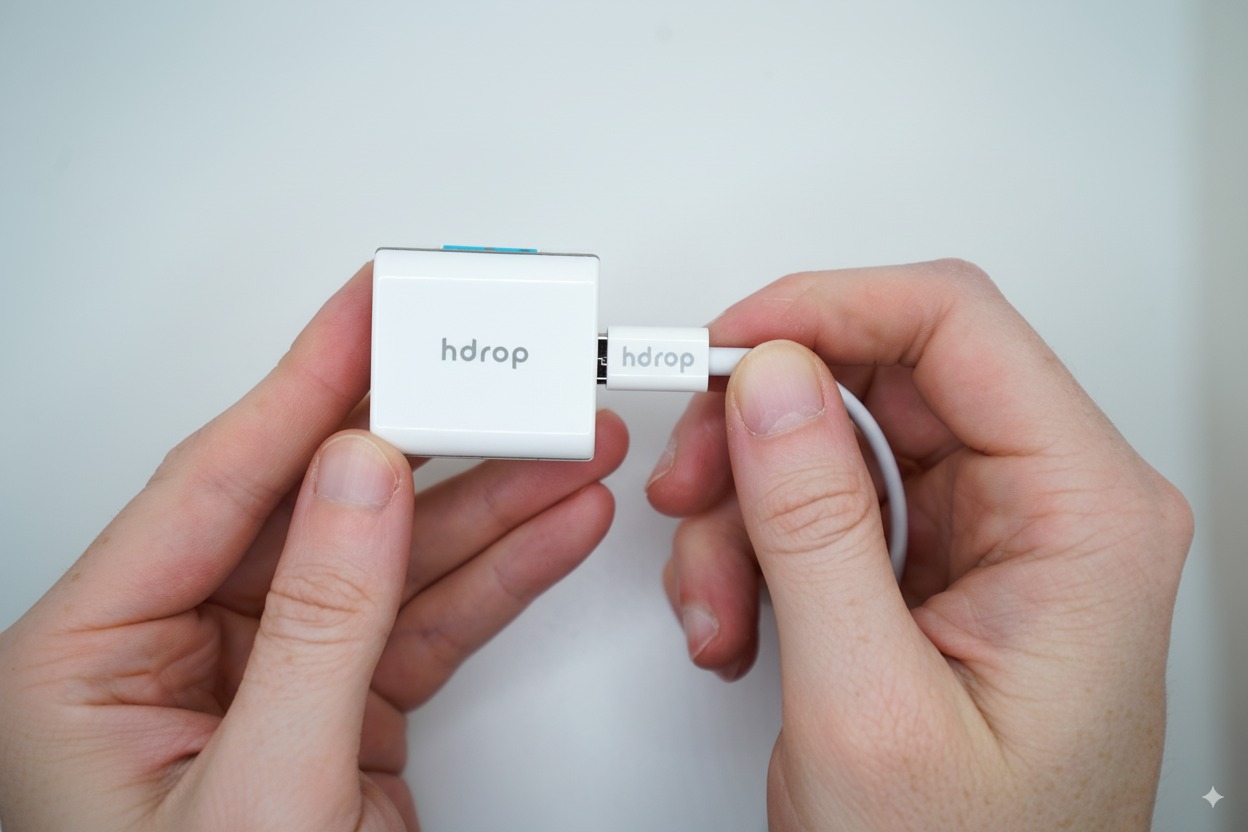 • Before anything else, connect the hDrop Gen 2 to the USB-C charger.